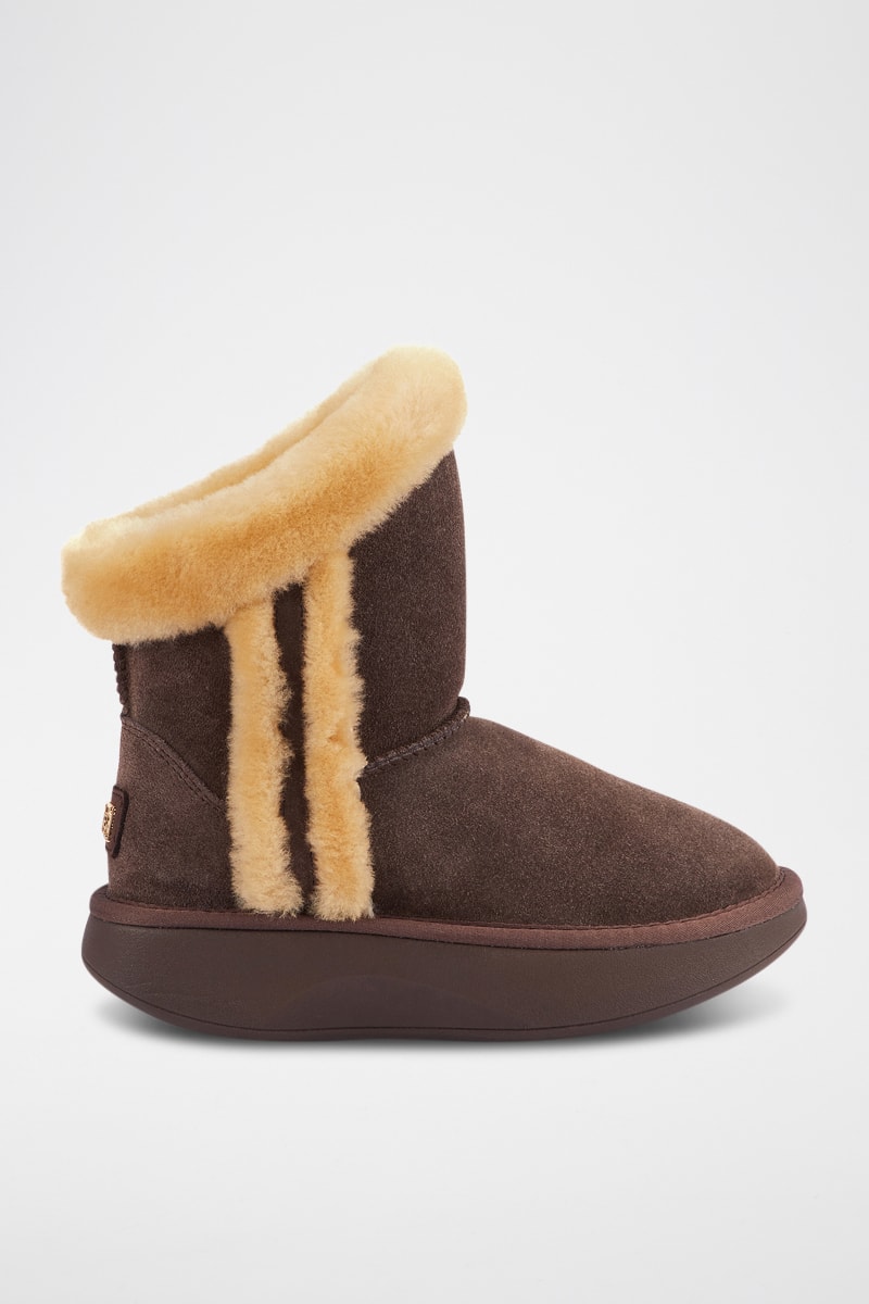 Botas de piel ovina con plataforma - Marrón