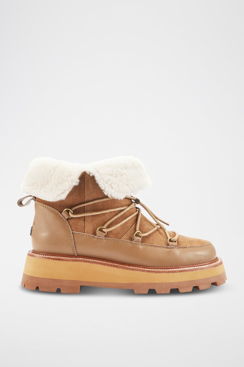 Botas de piel ovina con plataforma - Marrón