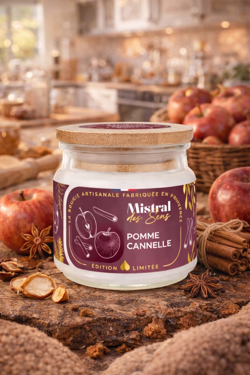 Vela perfumada con aroma a Manzana caramelizada con canela.