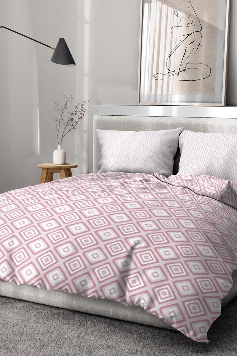 Juego de nórdico de algodón 57 hilos/cm² Fox Trot - Blanco y rosa viejo