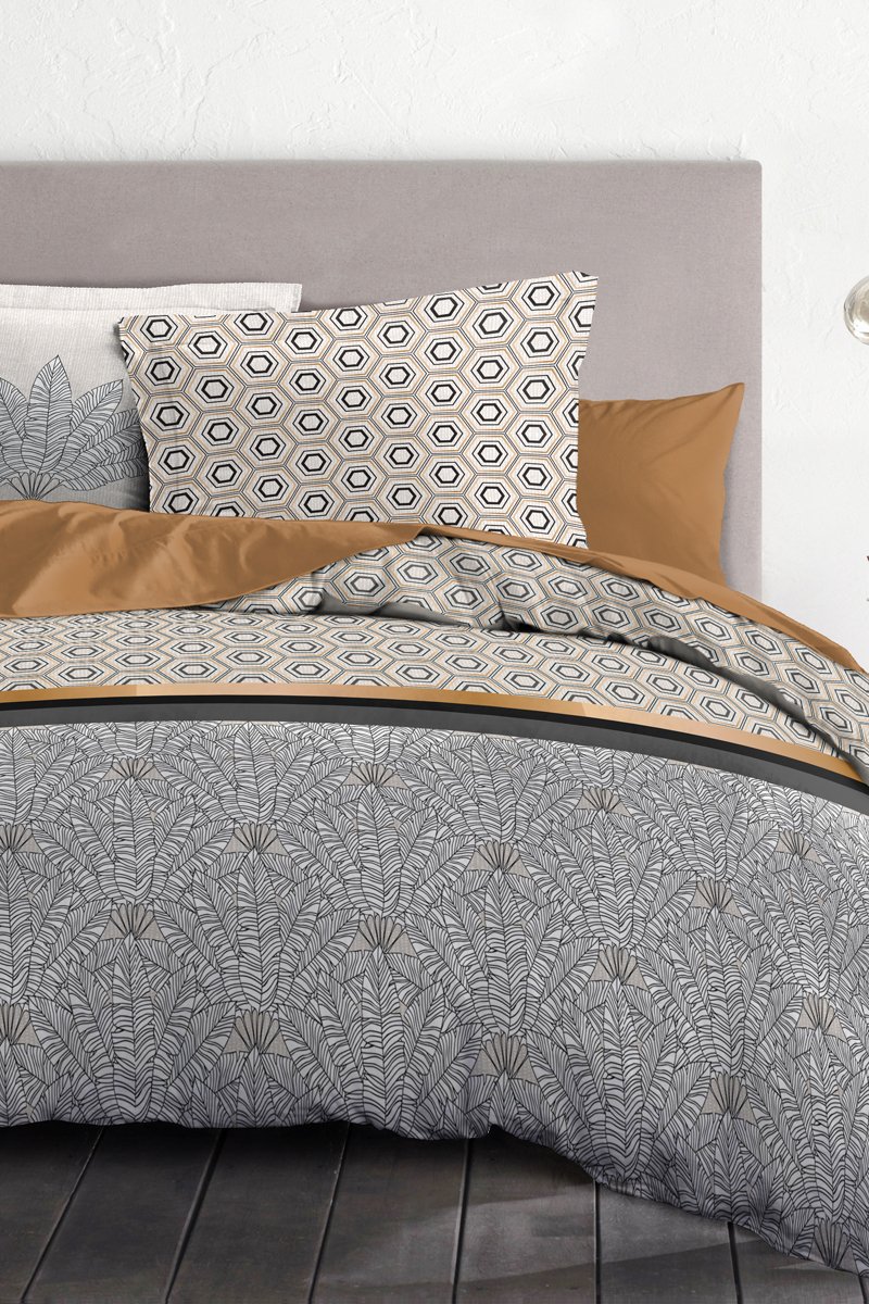 Juego de nórdico de algodón 57 hilos/cm² Louxor - Ocre y blanco