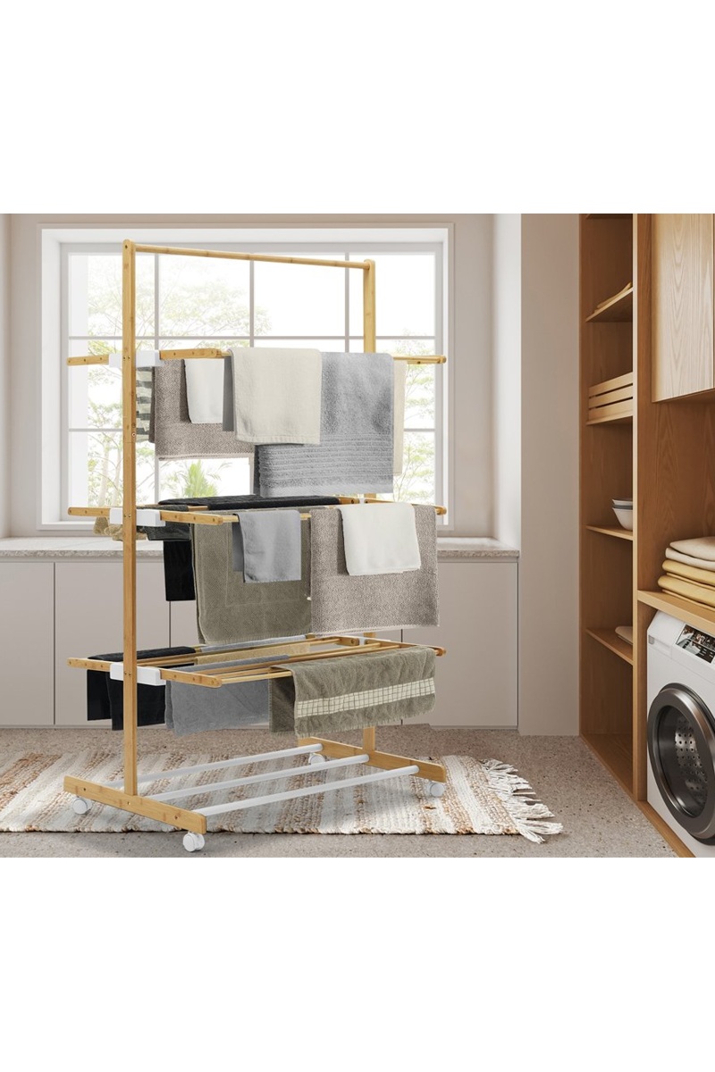 Tendedero de 3 niveles plegable de bambú.