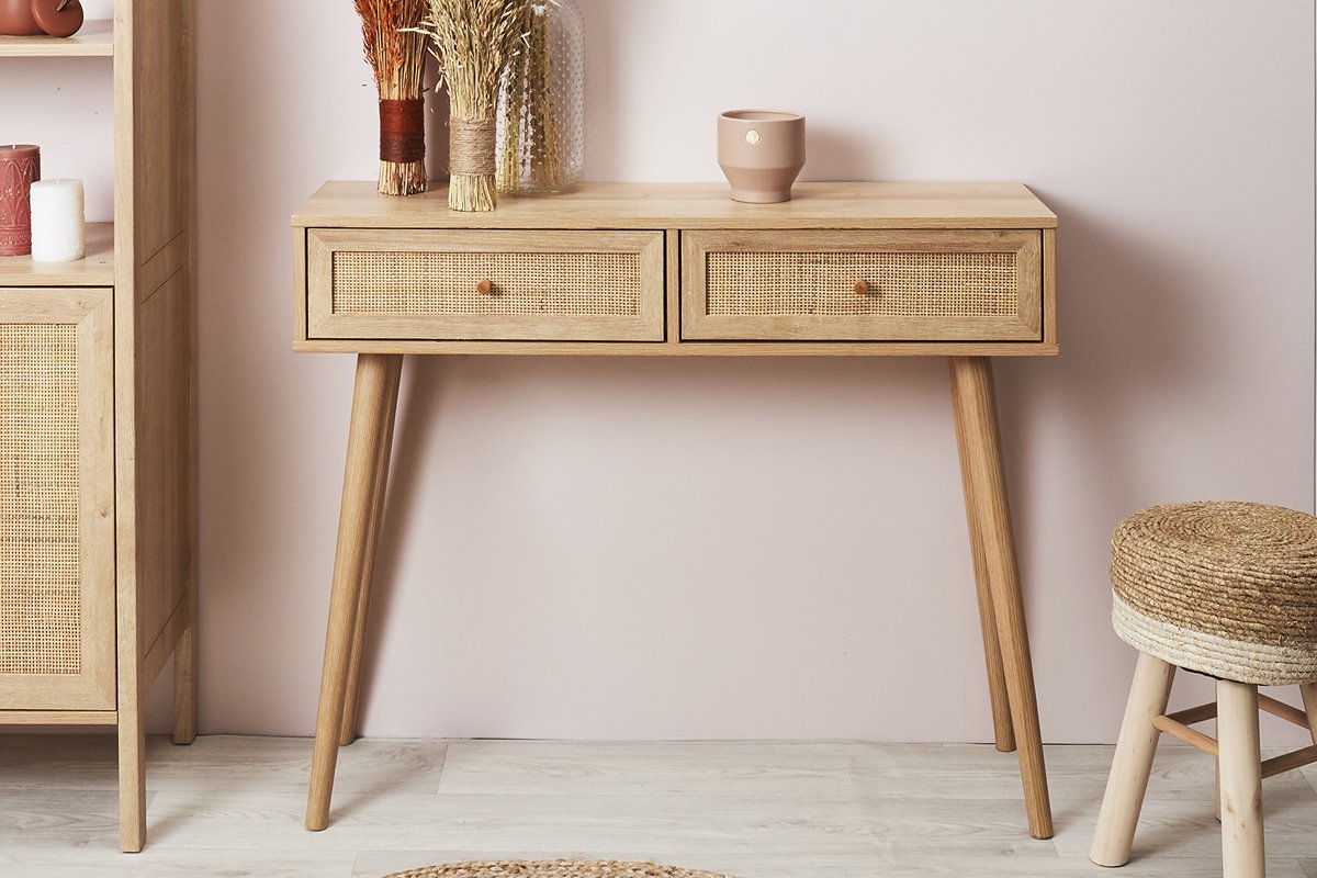 Consola de madera y ratán Bali - 100 x 29 x 81 cm