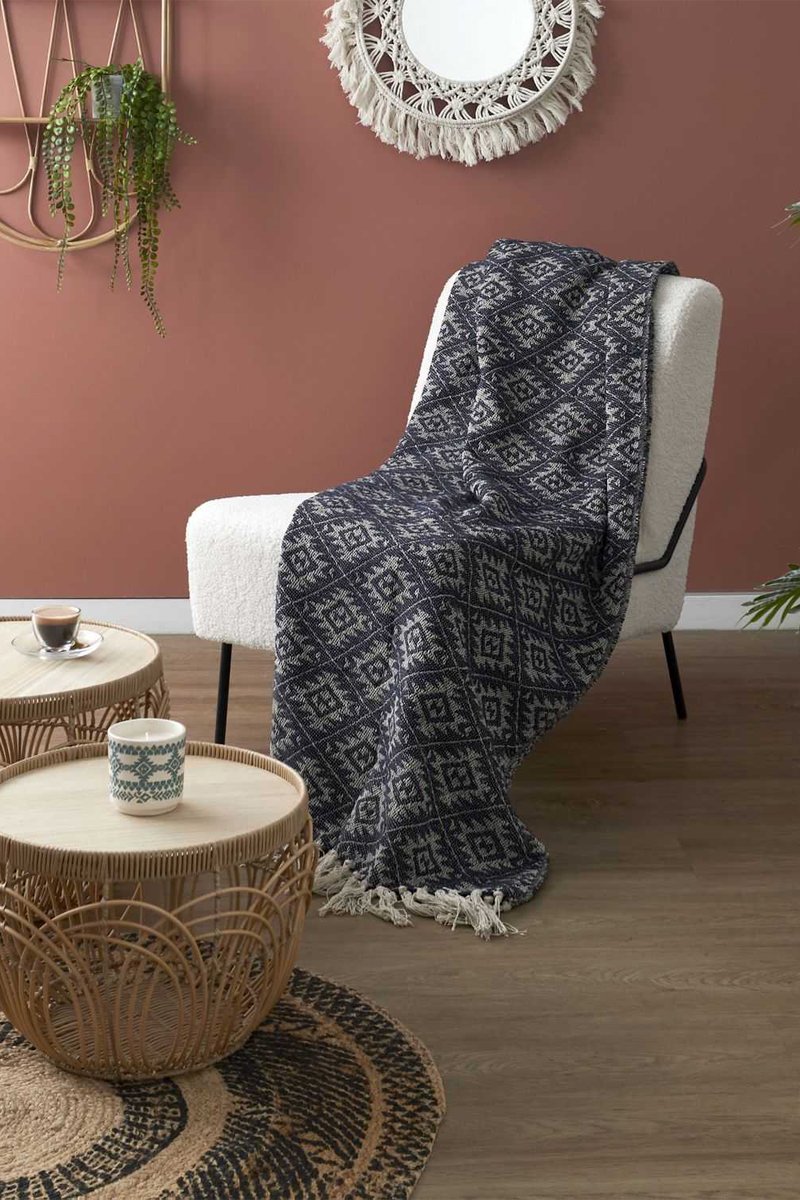 Manta - Azul y beige - 150 x 200 cm - Color aleatorio