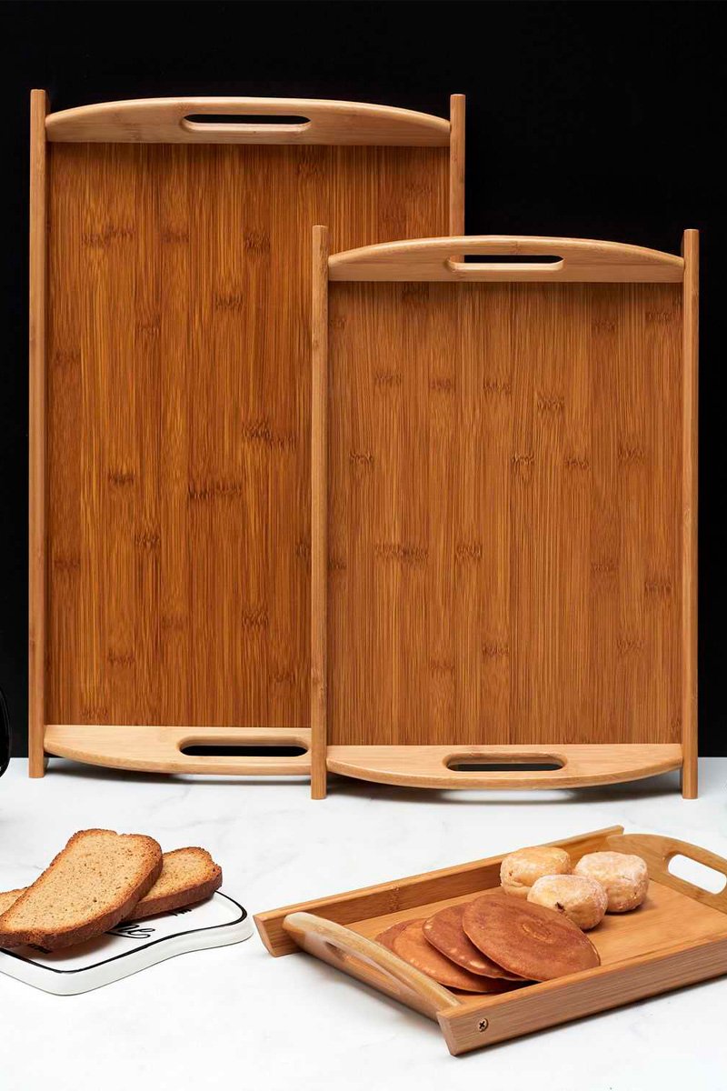 3 bandejas de bambú.