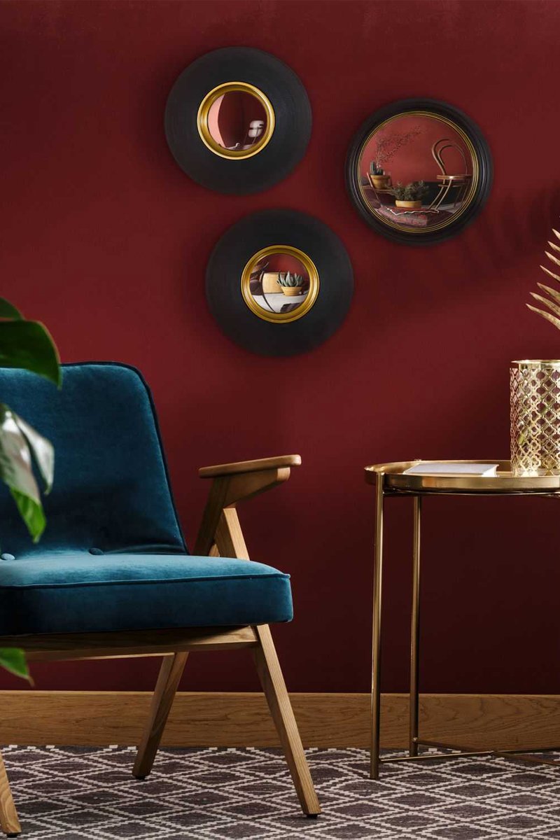 Pack de 3 espejos convexos - 26 x 26 x 3 cm - Negro y dorado