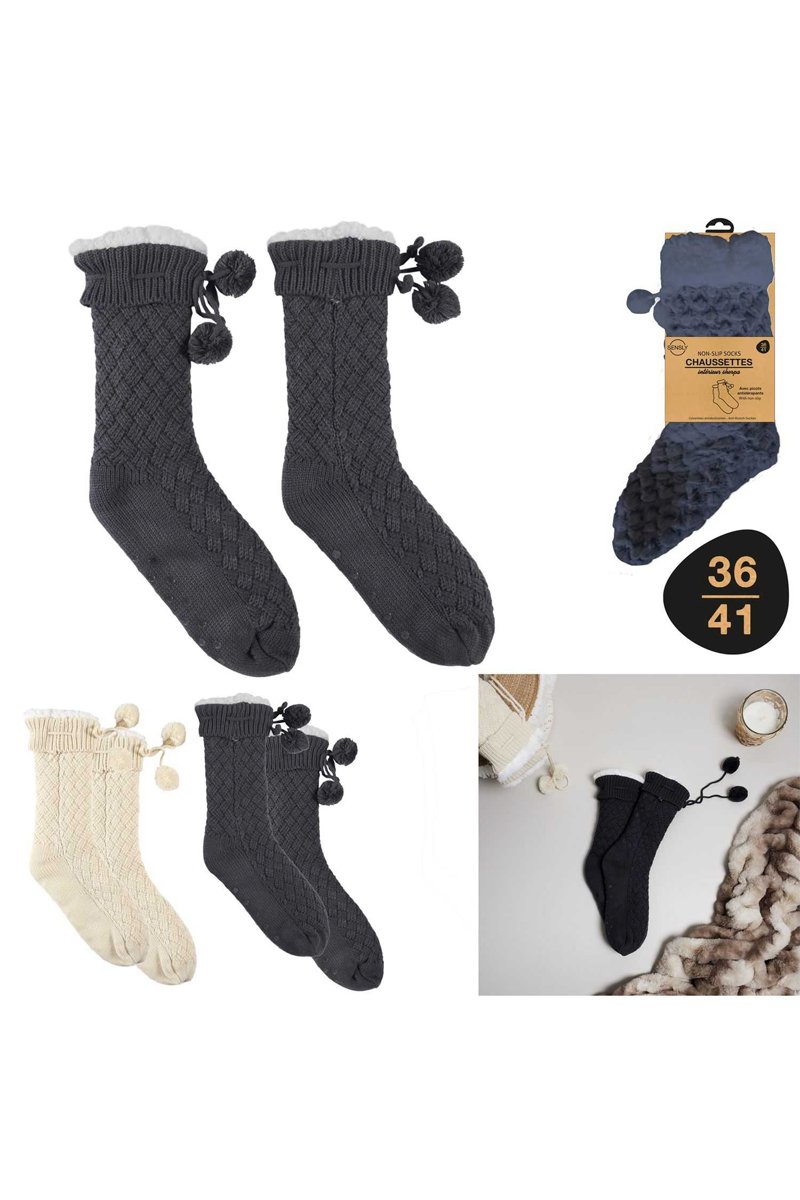 2 pares de calcetines forrados - Beige y gris oscuro