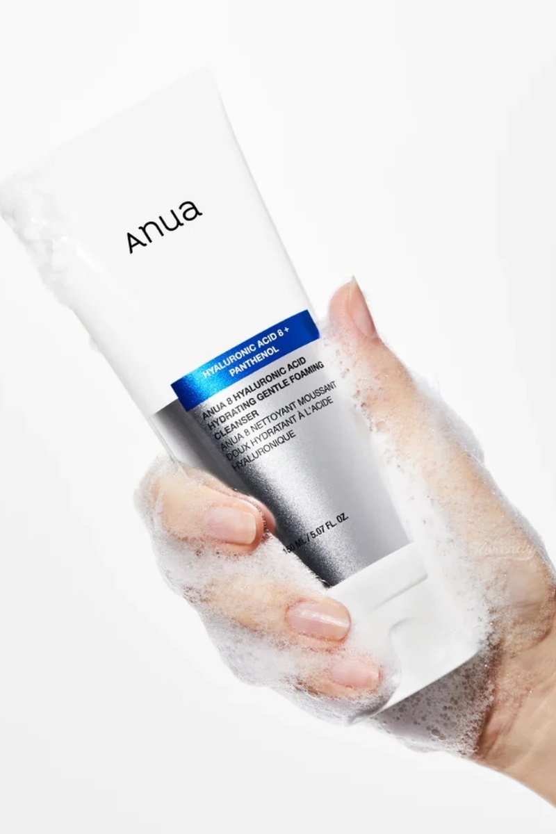 Una textura en crema que se transforma en espuma suave al aplicarse con agua, dejando la piel con un acabado refrescante e hidratante sin residuo pegajoso.