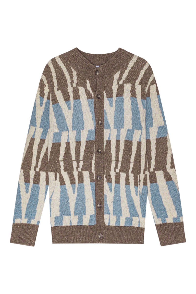 Cárdigan de lana y seda Frederick - Celeste y marrón