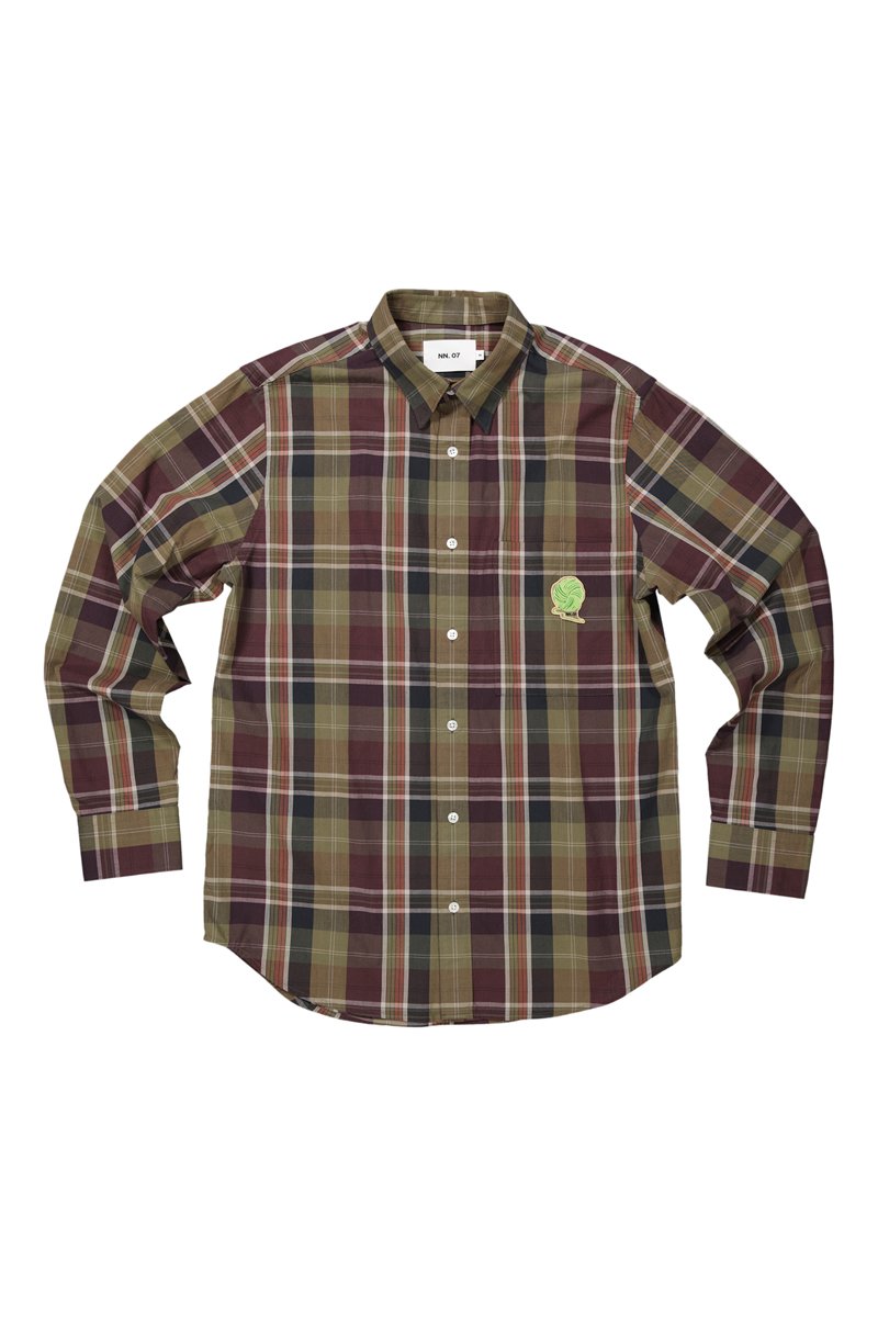 Camisa de algodón orgánico Cohen - Caqui y azul