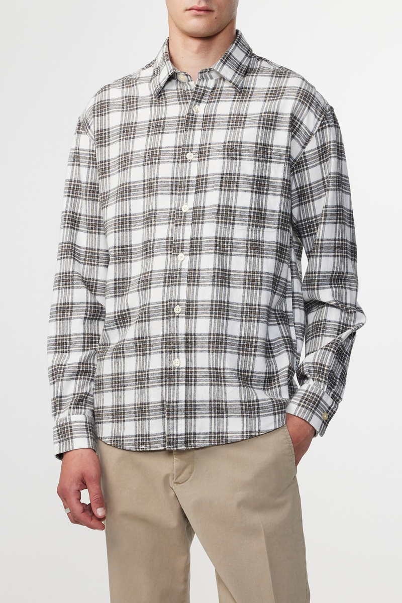 Camisa de algodón orgánico Deon - Blanco y gris oscuro