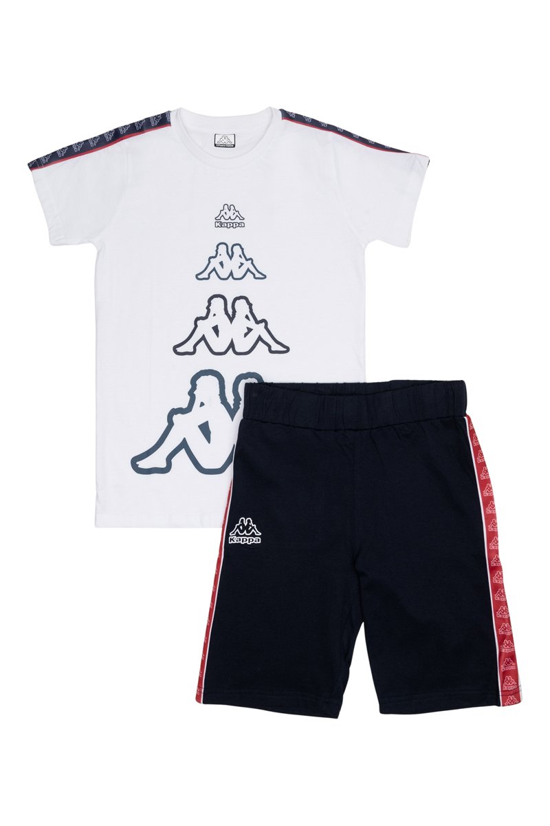 Bandas en contraste con logo en los hombros y las mangas.