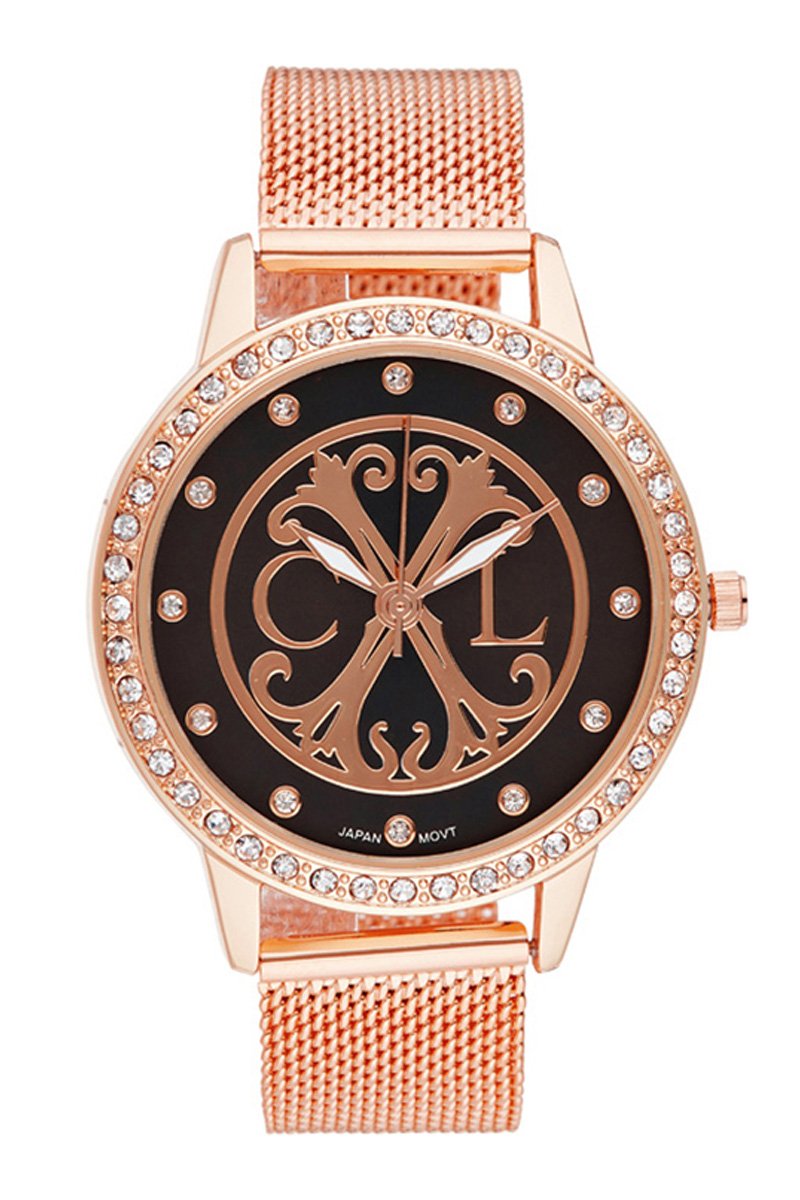 Reloj de cuarzo de acero - Rosa dorado y negro
