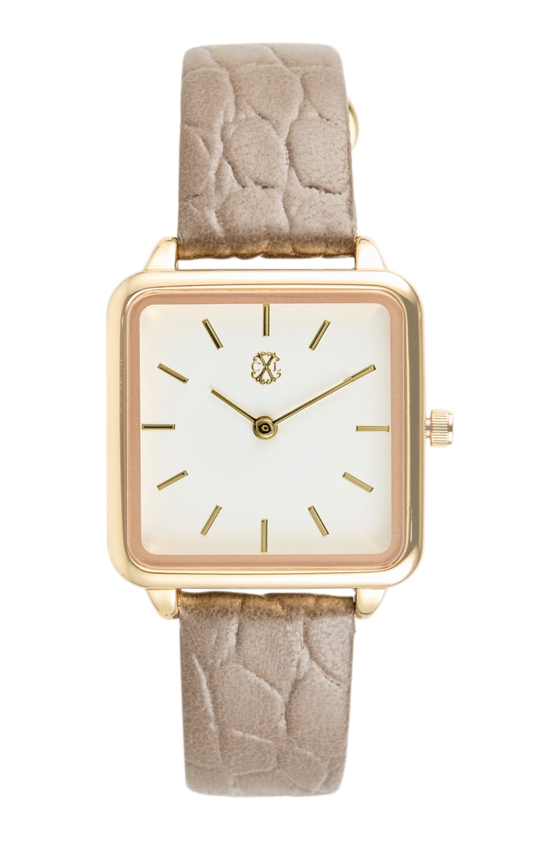 Reloj de cuarzo de poliuretano - Beige y dorado