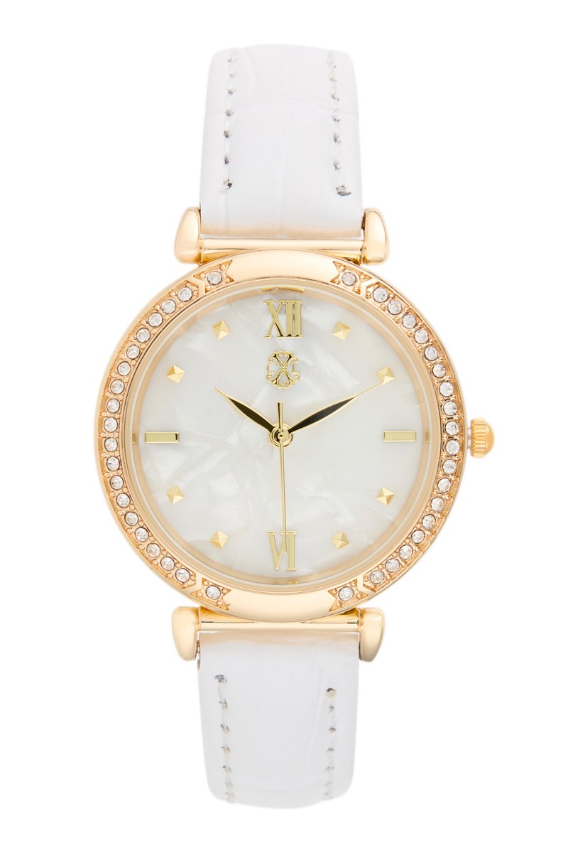 Reloj de cuarzo de poliuretano - Blanco y dorado