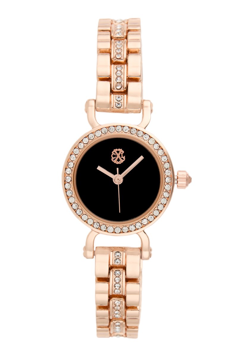 Reloj de cuarzo de metal aleado - Rosa dorado y negro