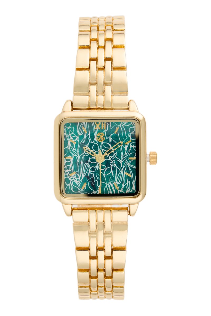 Reloj de cuarzo de metal aleado - Dorado y verde oscuro