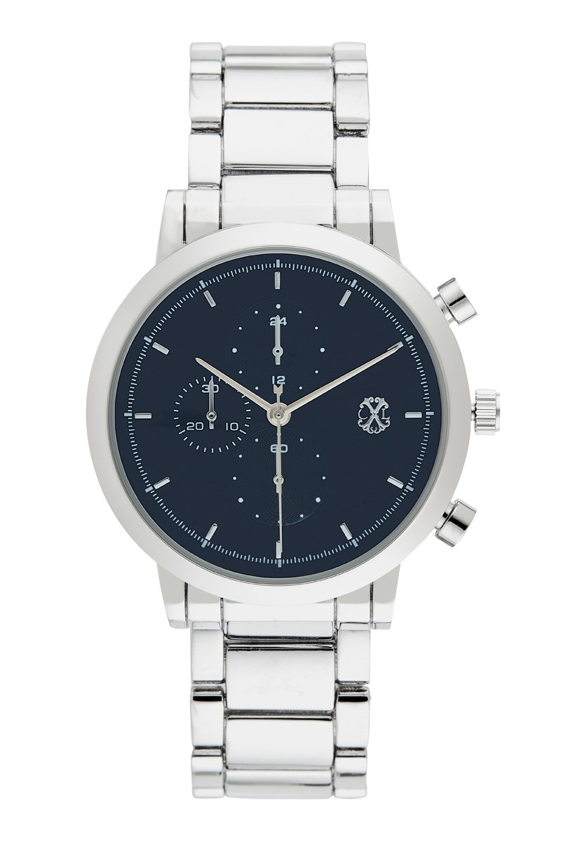 Reloj de cuarzo de metal aleado - Cronógrafo - Plateado y azul marino