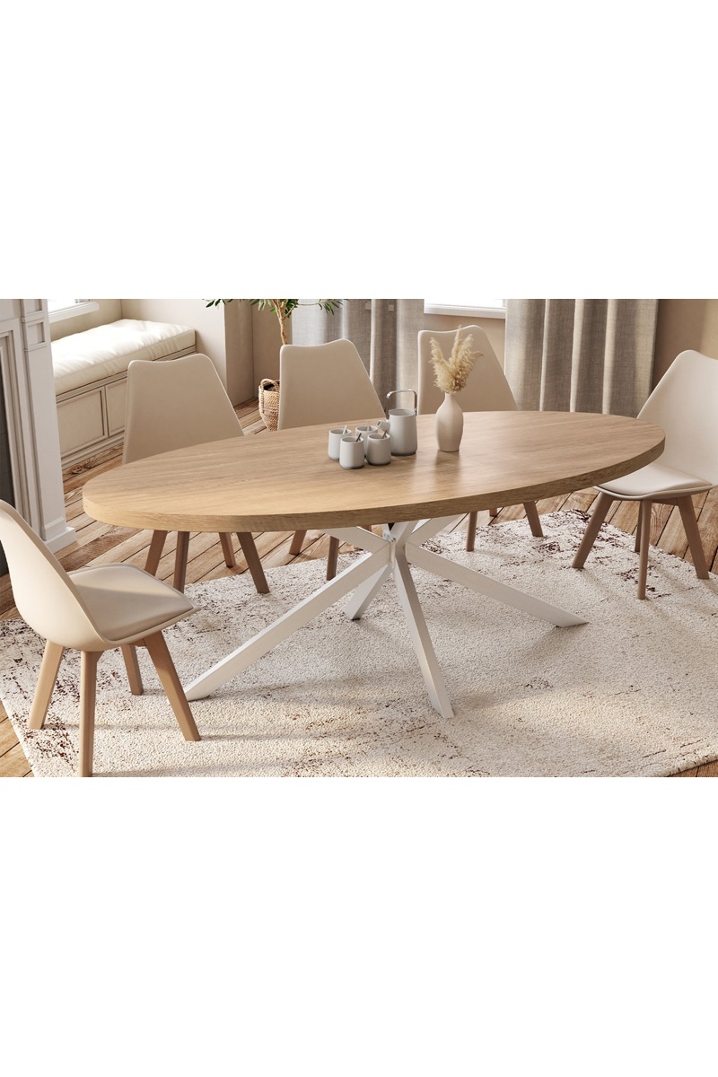 Mesa de comedor ovalada Céleste madera y blanco 200 cm