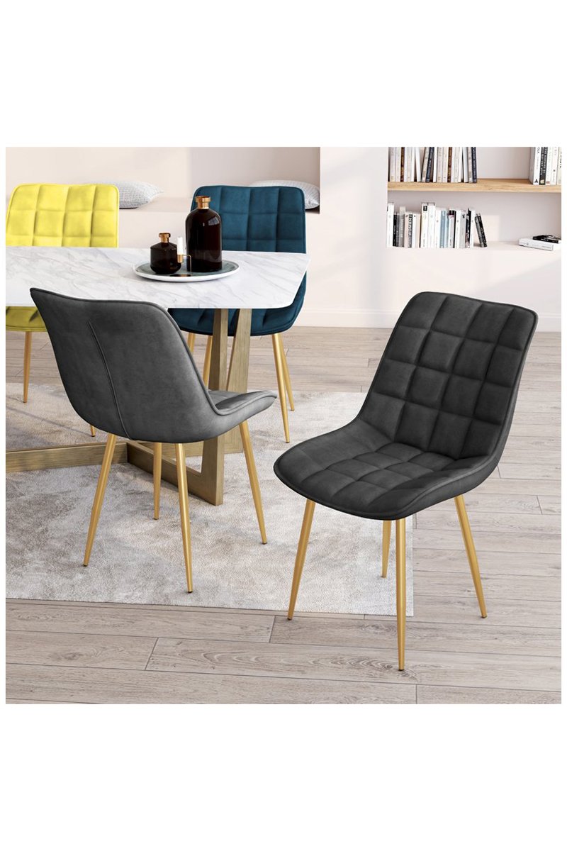 Son ideales para sentarse alrededor de una mesa y crear un ambiente acogedor, además de realzar tu hogar con sus líneas puras y redondeadas. El asiento de terciopelo, grande y acolchado, te proporcionará un gran confort y le aportará una sensación agradable a tu comedor.