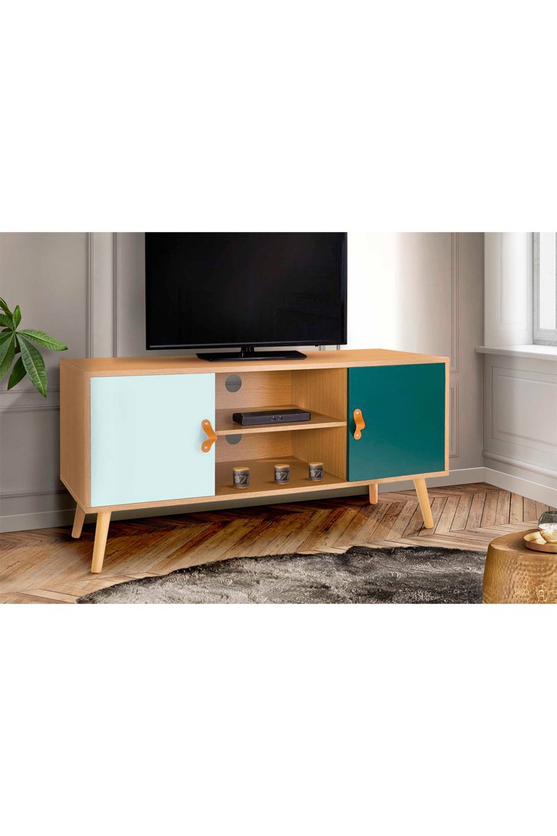 Mueble de TV de 2 puertas Aria - Imitación madera y verde