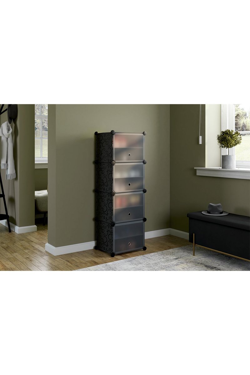 Zapatero cubo - 24 pares - Negro y transparente