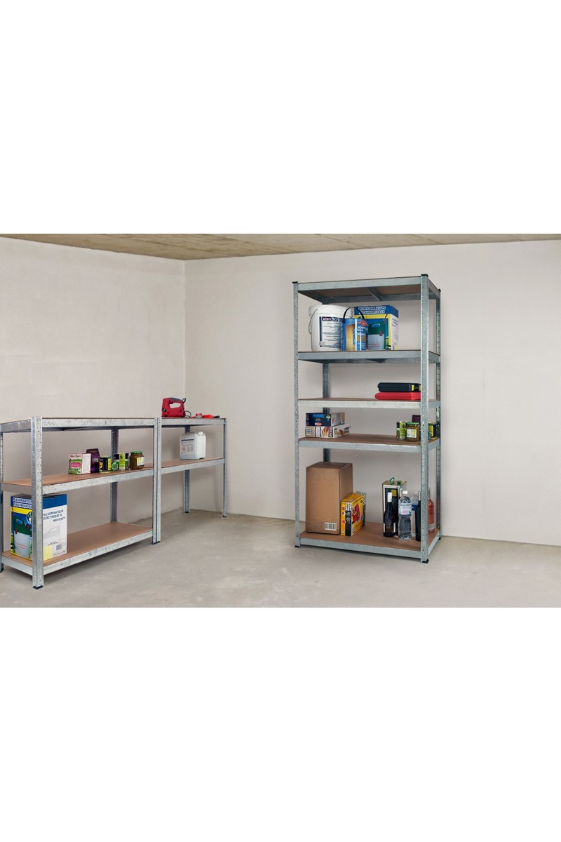 Cada estante puede soportar hasta 175 kg, ideal para organizar cajas pesadas con herramientas de bricolaje, botes de pintura y otros objetos que ocupan mucho espacio.