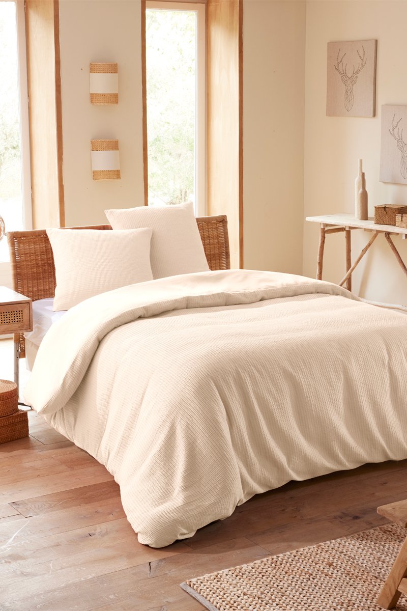 Juego de nórdico de algodón nido de abeja 57 hilos/cm² - Natural