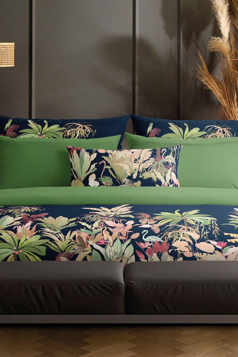 Juego de nórdico de satén de algodón 80 hilos/cm² Miami - Azul oscuro y verde claro