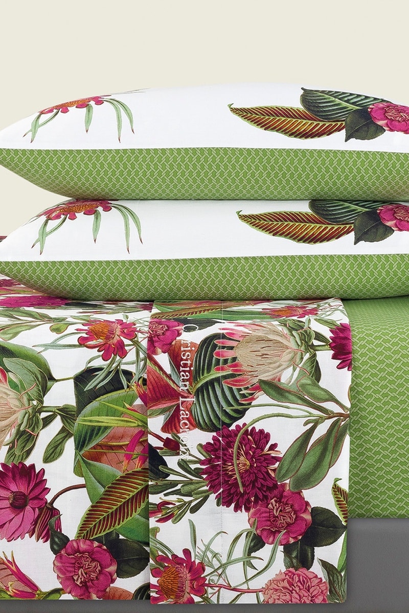 Juego de sábanas de satén de algodón 80 hilos/cm² Garden - Verde claro