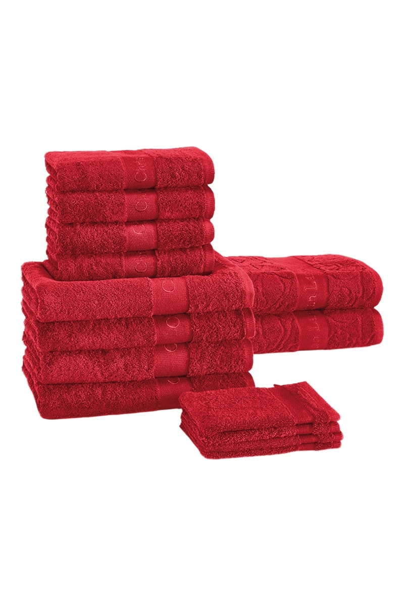 14 toallas y 4 manoplas de baño Uni - Burdeos