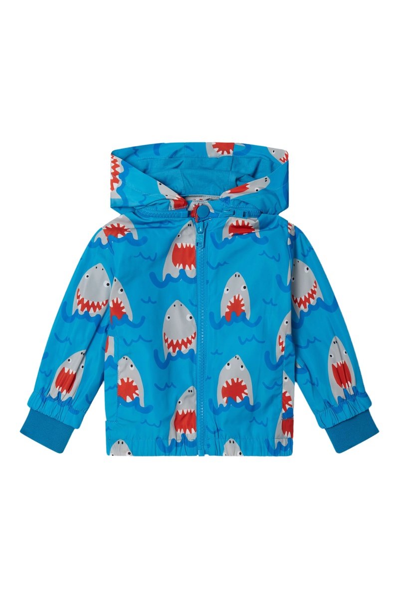 Cortavientos con capucha extraíble y tira de botones a presión.