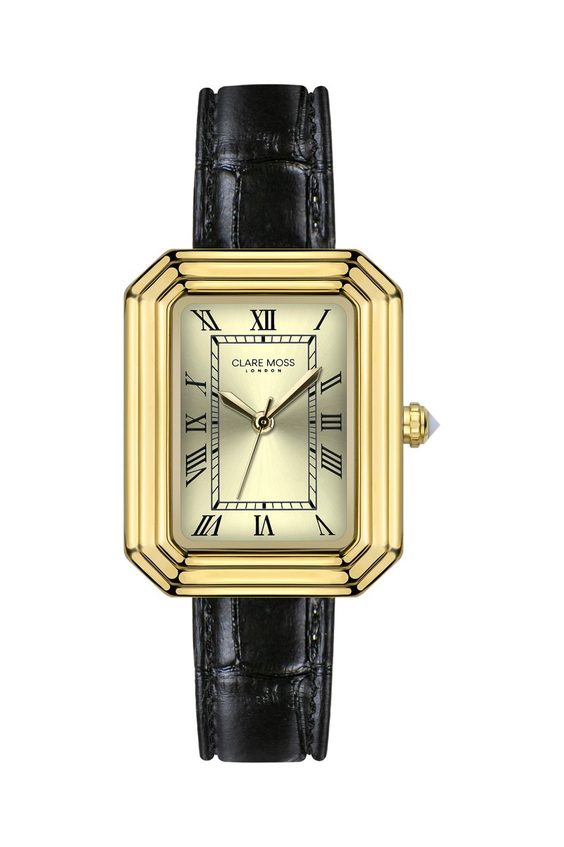 Reloj de cuarzo de piel bovina Jasmine - Negro y dorado