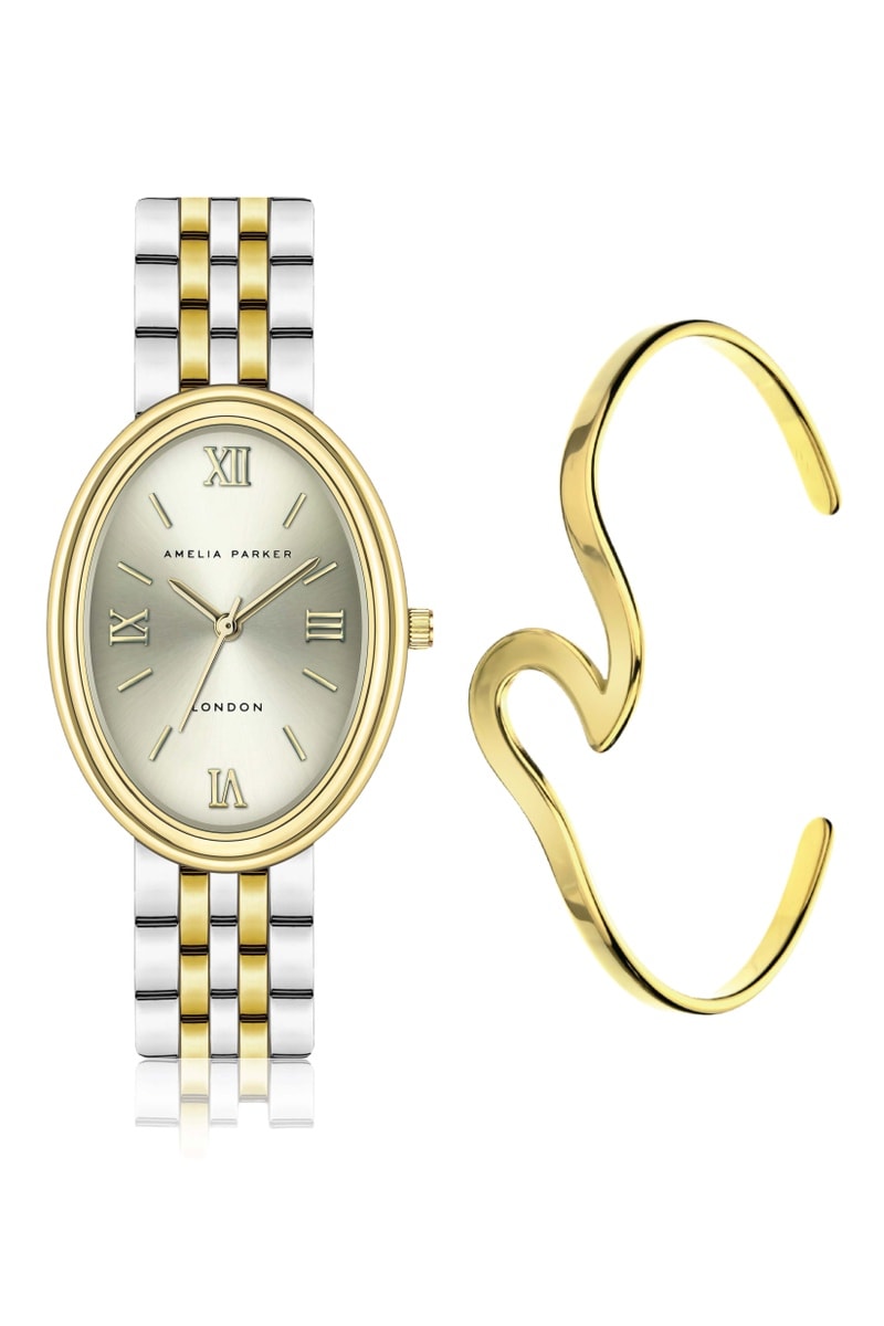 Estuche reloj de cuarzo y pulsera de acero Soraya - Plateado y dorado