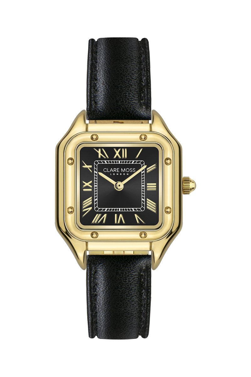 Reloj de cuarzo de piel bovina Clare - Negro y dorado