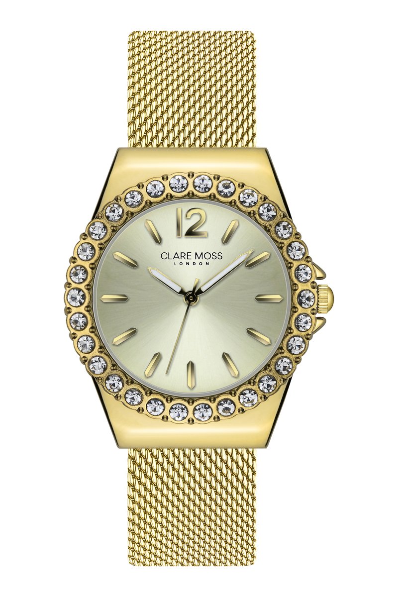 Reloj de cuarzo de acero y circones Kensington - Dorado