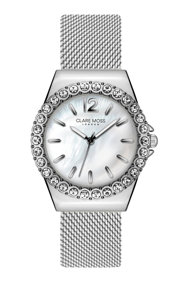 Reloj de cuarzo de acero, nácar y circones Mayfair - Plateado y blanco