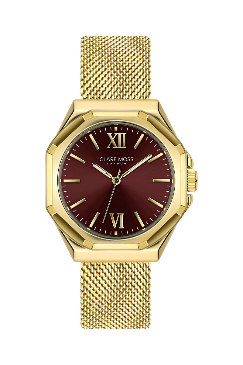 Reloj de cuarzo de acero Burgundy