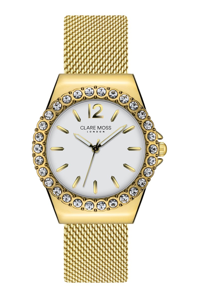 Reloj de cuarzo de acero y circones Classic - Dorado y blanco