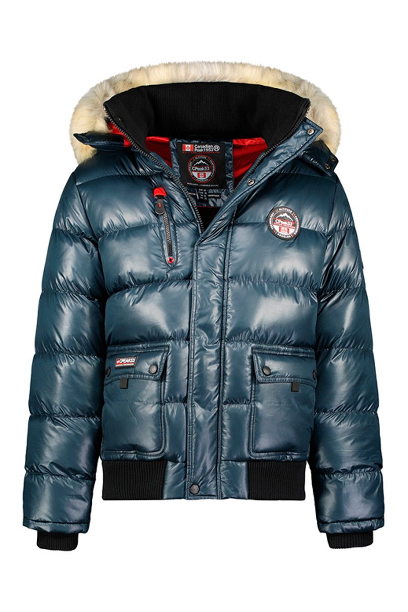 Anorak con capucha extraíble con pelo sintético y tira ajustable.