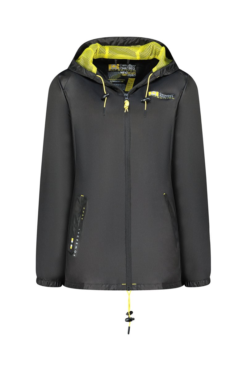 Tiras de ajuste con topes en la capucha y en el bajo.