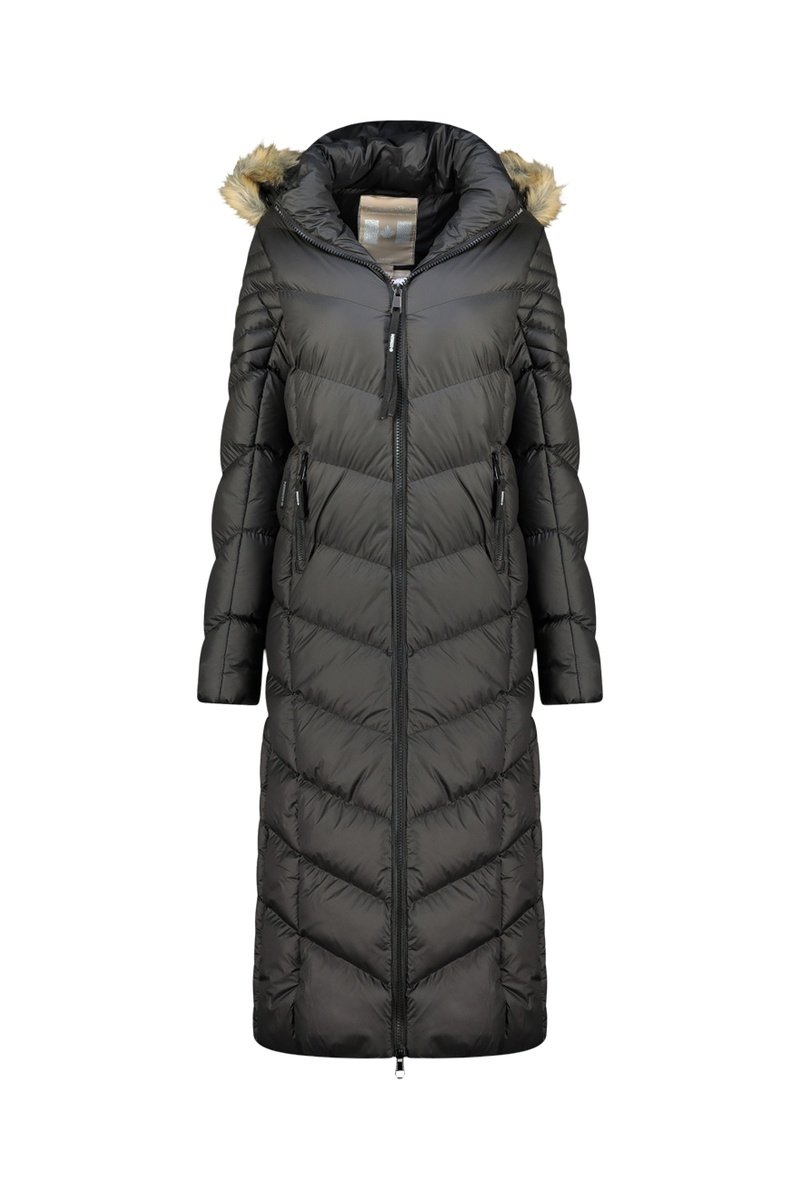 Anorak largo con capucha y pelo sintético.
