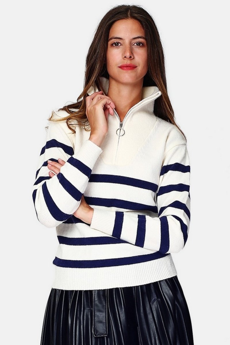 Cuello alto con cremallera.