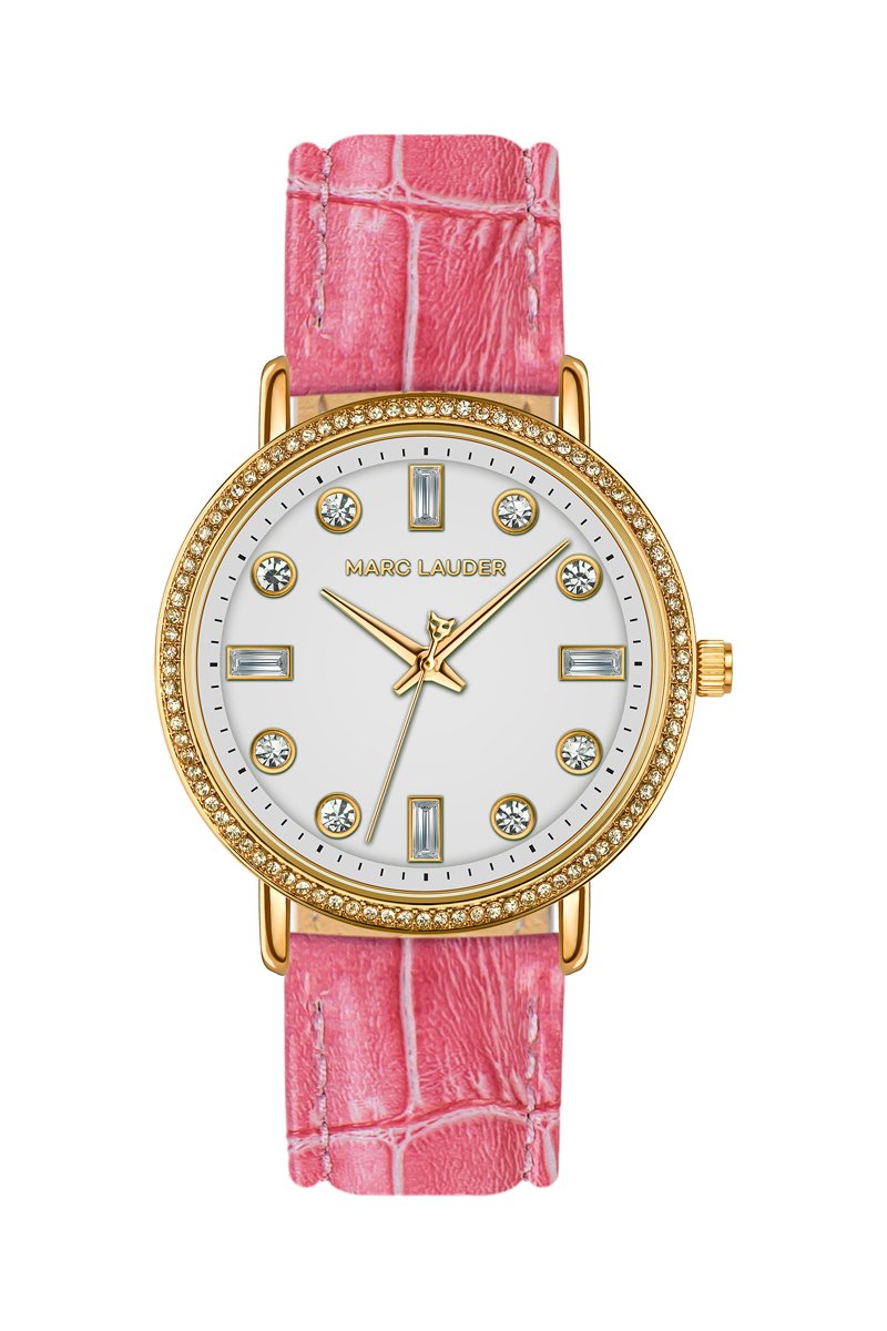 Reloj de cuarzo de piel Paris - Rosa y dorado