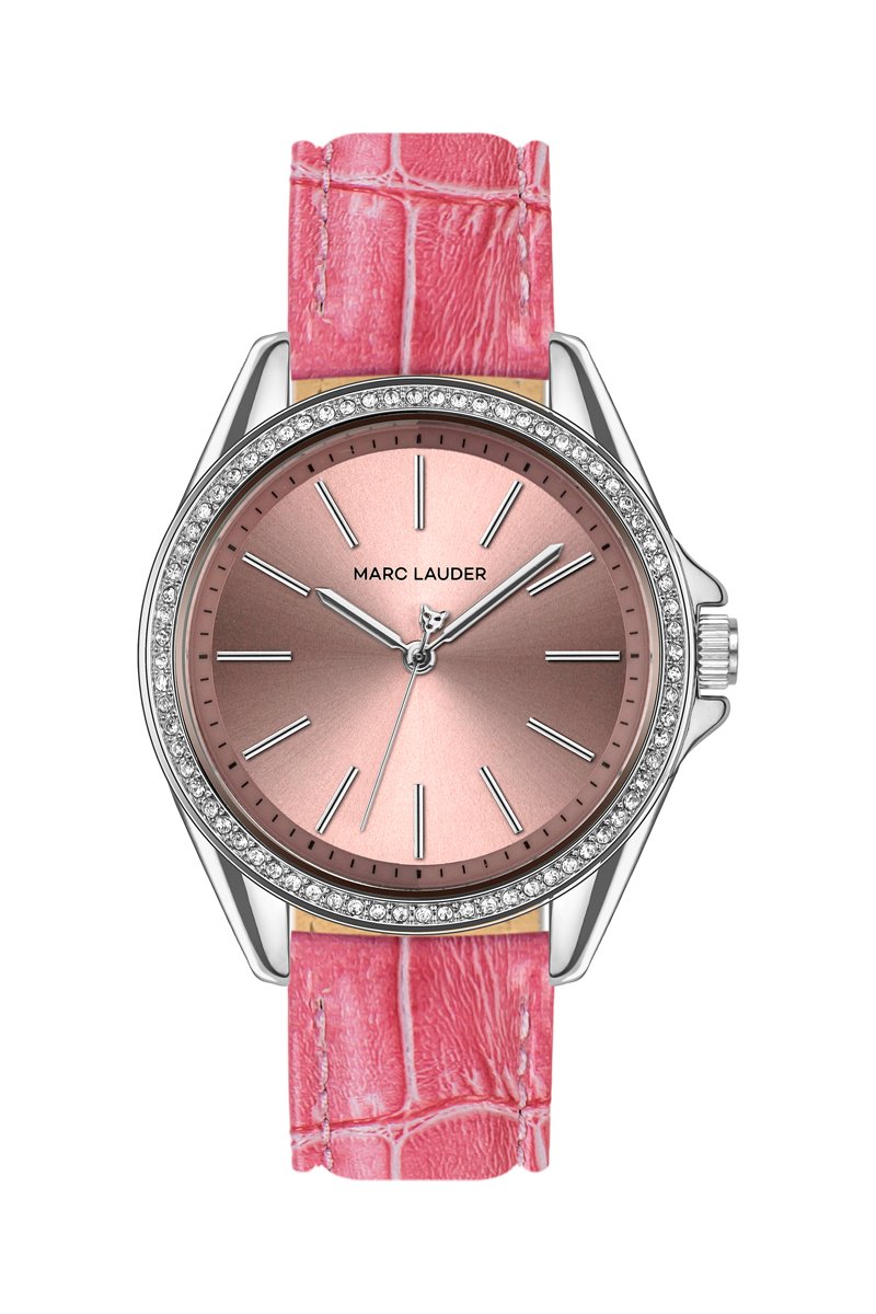 Reloj de cuarzo de piel St Tropez - Rosa y plateado