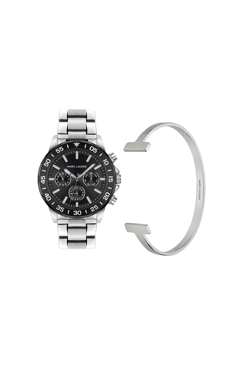 Estuche reloj de cuarzo de acero y pulsera abierta