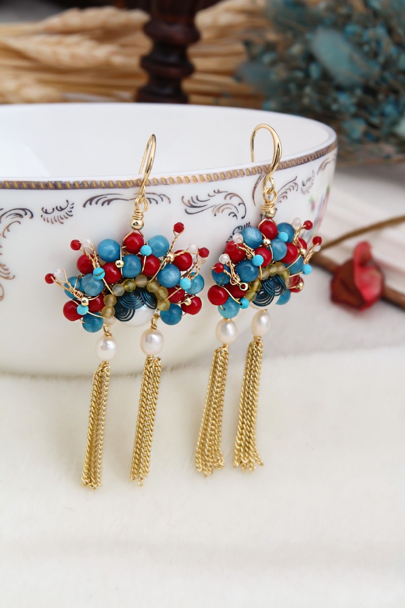 Material: latón chapado en oro amarillo, cobre, perlas cultivadas y cristales