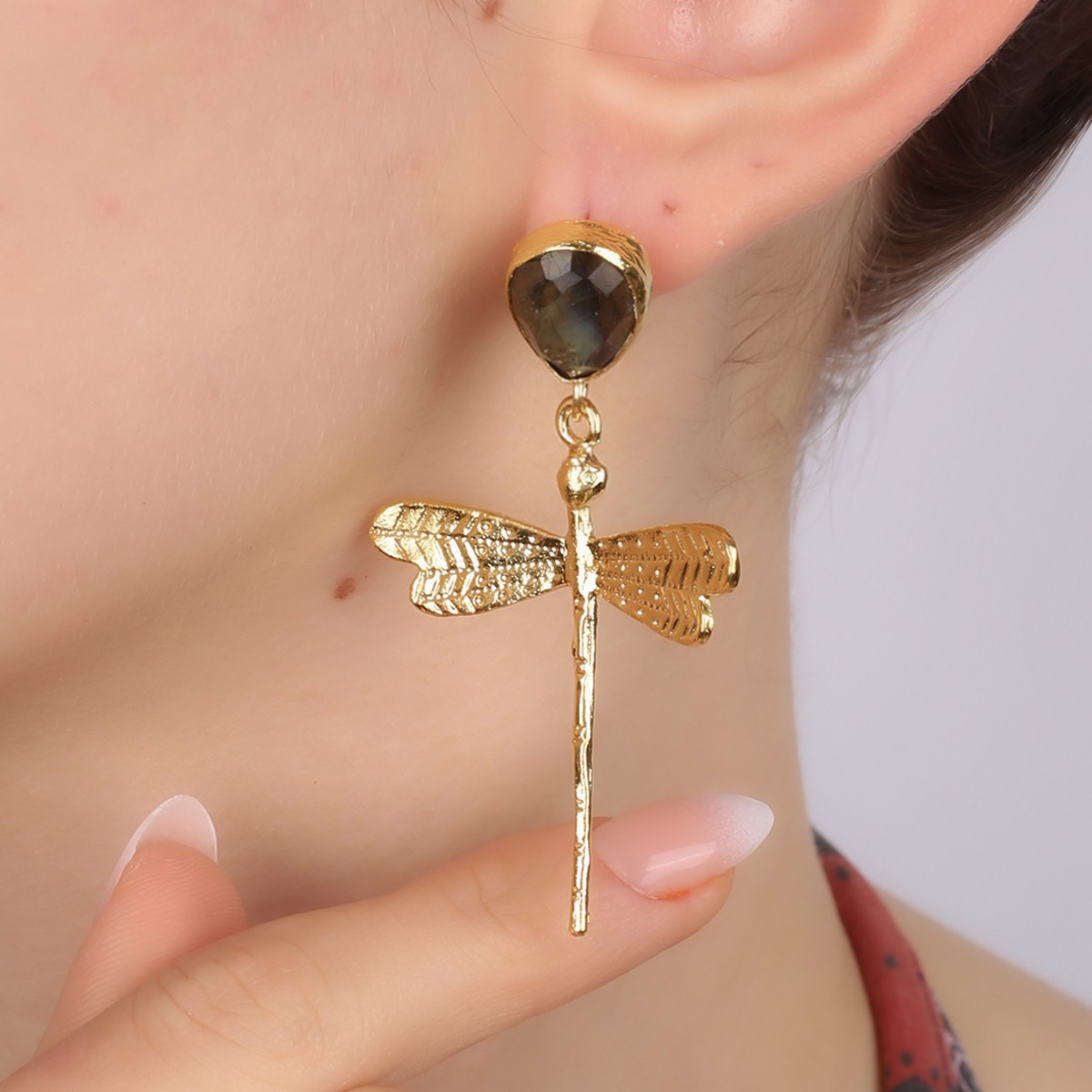 Pendientes - Latón chapado en oro y labradorita