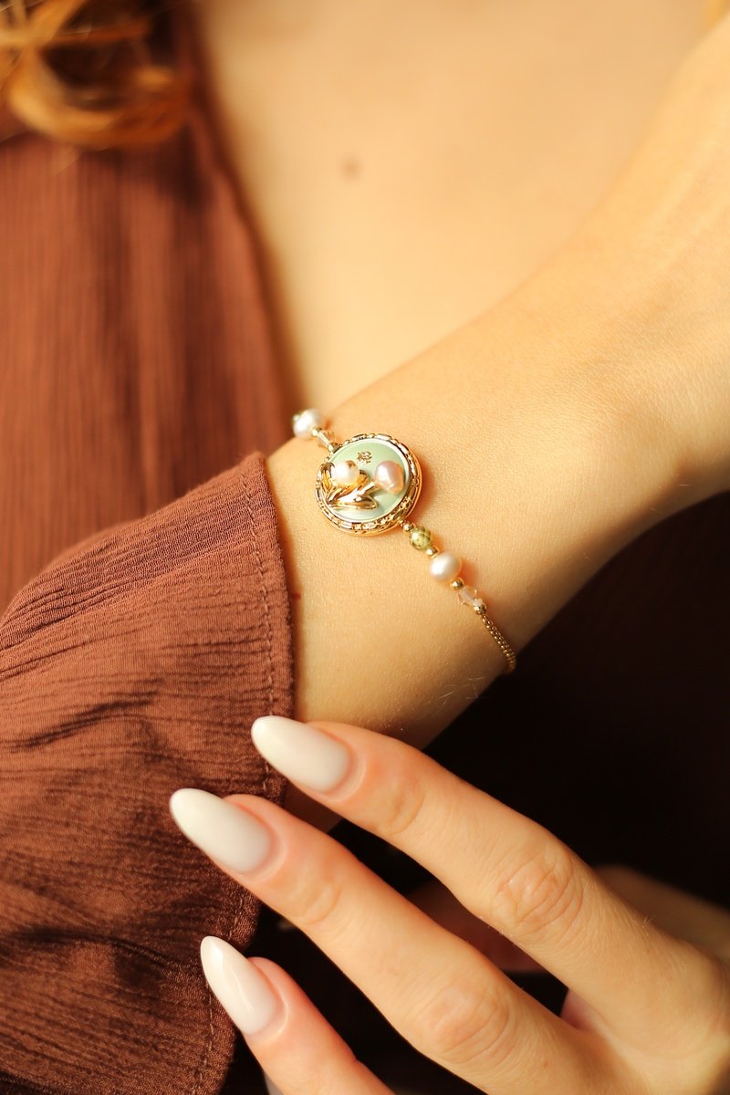 Material: latón, cobre y perlas de imitación