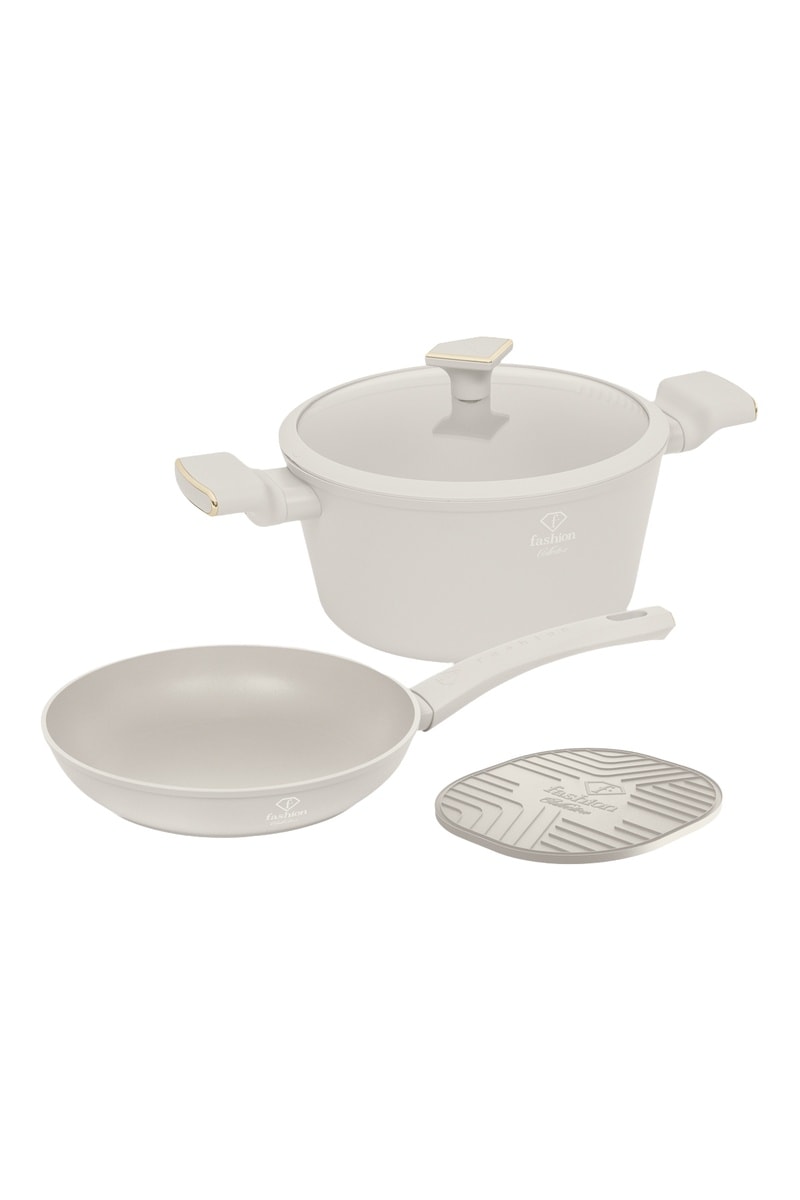 Batería de cocina Matte Cream de aluminio forjado que incluye: